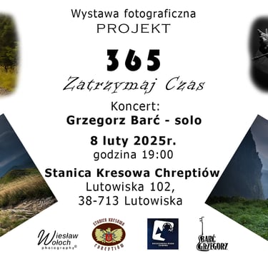 Serdecznie zapraszam na wyjątkowe wydarzenie, które odbędzie się 8 lutego 2025 roku o godzinie 19:00 w Stanicy Kresowej Chreptiów w Lutowiskach. W ramach tego wydarzenia będzie można zobaczyć wystawę fotograficzną Wiesława Wołocha, prezentującą prace z Projektu 365 - Zatrzymaj Czas.