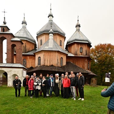 Wszystko w spójną całość zamknęła prowadząca spotkania artystka Róża Franczak wtajemniczając nas w historie powstawania trzech cerkwi, /Cerkiew Zaśnięcia Matki Boskiej w Baligrodzie, Cerkiew Michała Archanioła w Bystrem i Cerkiew pod wezwaniem Św. Paraskewii w Łopience. /