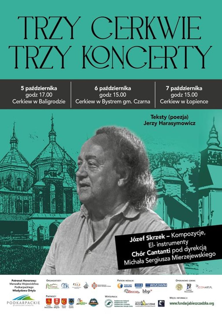 I zabrzmiały józkowe organy, rozległy się basy i anielskie soprany chóru Cantanti pod batutą charyzmatycznego Michała Sergiusza Mierzejewskiego. Zadrżały belki drewnianych grekokatolickich cerkwi z poświęceniem ratowanych przez miejscowych społeczników. Świątynie wypełniła muzyka specjalnie skomponowana do poezji Jerzego Harasymowicza przez samego mistrza Józefa Skrzeka, multiinstrumentalisty, założyciela kultowej grupy SBB .