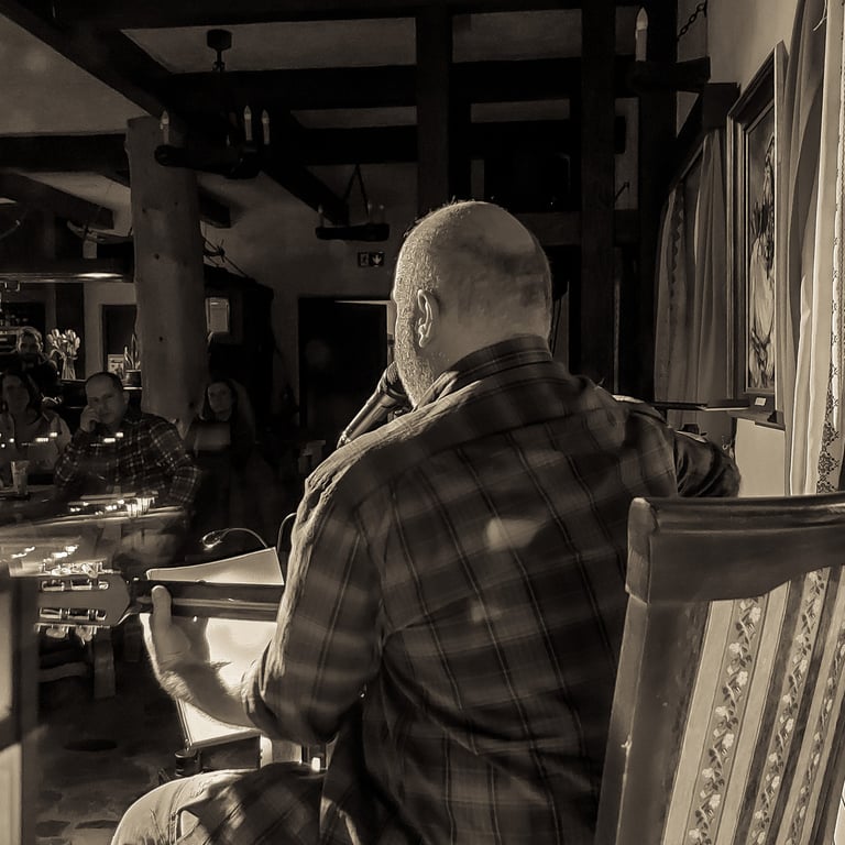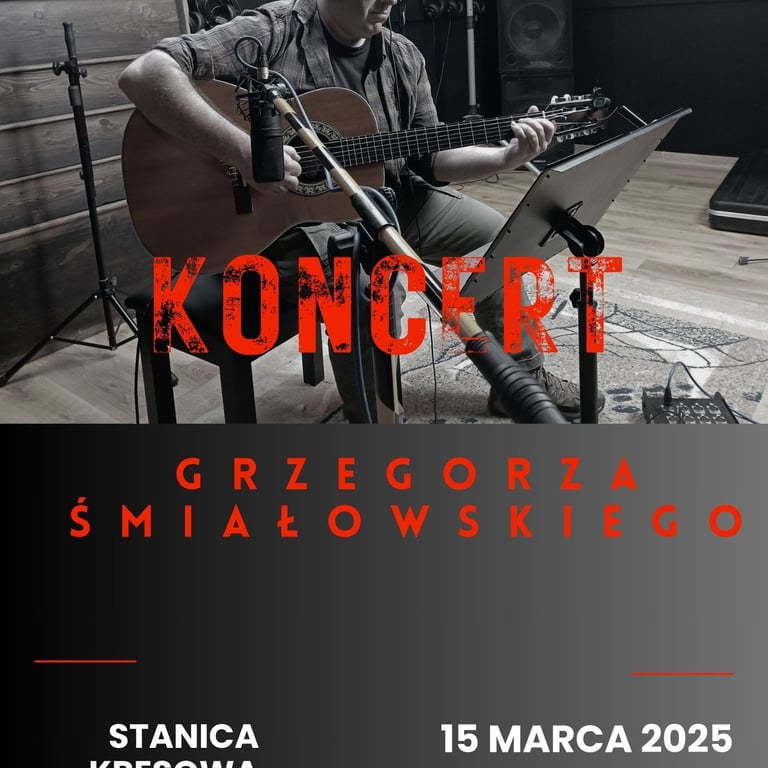 15.03.2025 (5) Koncert Grzegorza Śmiałowskiego Serdecznie zapraszam na kolejne spotkanie z cyklu "Chreptiowskie soboty z gośćmi Roberta Żurakowskiego" Tym razem zapraszam Was na koncert Grzegorza Śmiałowskiego Grzegorz Śmiałowski — pasjonat gór i zakochany w nich bezgranicznie. Jak sam twierdzi: "Turysta z epoki, gdzie w schroniskach górskich ludzie w koszulach flanelowych spędzali wspólnie wieczory przy gitarach." Twórca muzyki do wierszy takich poetów jak m.in.: Jerzy Harasymowicz, Robert Marcinkowski, Wiesława Kwinto-Koczan i innych. Współtwórca i założyciel wraz z Robertem Marcinkowskim grupy "Bez Zobowiązań", która — wraz z wieloma innymi zespołami — współtworzyła klimat programu "W górach jest wszystko co kocham". Twórczość grupy osadzona jest głęboko w nurcie poezji śpiewanej. Utwory zespołu zaistniały na trzech płytach programu "W górach jest wszystko co kocham", a także na ich trzech autorskich albumach: Szałasolot Grelland song I wciąż bez... (2024) Jako miejsce do życia wybrał Bieszczady, gdzie mieszka już od blisko 20 lat. Wczoraj w Stanicy Kresowej Chreptiów mieliśmy przyjemność uczestniczyć w wyjątkowym koncercie Grzegorza Śmiałowskiego. Jego muzyka porwała nas w niezwykłą podróż pełną emocji, ciepła i poetyckich melodii. Publiczność wsłuchiwała się w każdy dźwięk, a kameralna atmosfera sprawiła, że wieczór na długo pozostanie w naszej pamięci. 7 attachments